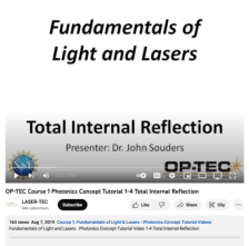 This lecture, presented by John Souders, covers the basics of total internal reflection as it relates to the fundamentals of light and laser. In seven minutes, Souders explains the 'critical angle of reflection,' which is "a necessary factor to consider when choosing whether to use dry or oil...