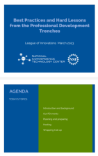 These resources, provided by the National Convergence Technology Center, include a presentation slide-deck and two surveys from the spring 2023 Innovations conference in Arizona. The presentation covered key strategies and best practices for successfully planning and delivering a professional...