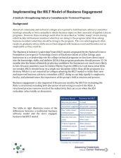 This 37-page document, provided by the National Convergence Technology Center (CTC), is a detailed guide on best practices for implementing and managing the BILT model of business engagement. The BILT model is a more collaborative version of the traditional advisory council that "puts businesses in...