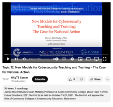 This video is provided by Whatcom Community College and is the twelfth topic of the Future Direction: 2021 Summit that was held on October 19-21, 2021. The Summit explored the role of community colleges in cybersecurity education. This video features James Rice interviewing Owen McNally, Professor...