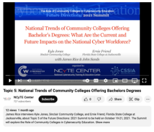 This video is provided by Whatcom Community College and is the eighth topic of the Future Direction: 2021 Summit that was held on October 19-21, 2021. The Summit explored the role of community colleges in cybersecurity education. This video features James Rice interviewing Dr. Kristine Christensen...