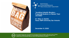 This presentation, provided by the National Convergence Technology Center (CTC) as part of a special 30-minute "Brown Bag" webinar series, includes an overview of common mistakes students make in preparing LinkedIn profiles. The presenter, Dr Ruby Daniels from Texas A&M San Antonio, "... discusses...