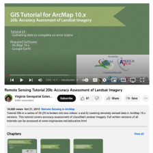 This tutorial, provided by Virginia Geospatial Extension, is part of a series of 30 videos that cover remotely sensed data in ArcMap 10.x versions. This tutorial is divided into two videos (20A and 20B) and covers "accuracy assessment of Landsat Imagery." Gathering data to complete an error matrix...