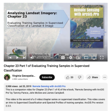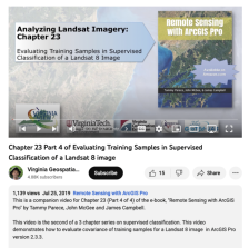 This video, provided by Virginia Geospatial Extension, is part of a series of 28 tutorial videos on remote sensing with ArcGIS Pro. This tutorial "... demonstrates how to evaluate covariance of training samples for a Landsat 8 image in ArcGIS Pro version 2.3.3." This video runs 04:07 minutes in...