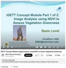 This video, from the Integrated Geospatial Education and Technology Training Project (iGETT), is the first part of a two-part presentation on monitoring vegetation greenness with remote sensing. The lecture focuses on use of the the Normalized Difference Vegetative Index (NDVI), including data...
