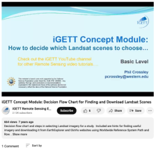 This video, created by Integrated Geospatial Education and Technology Training Project (iGETT), provides a decision flow chart and steps for selecting Landsat imagery for a study. The video includes "hints for finding useful imagery and downloading it from EarthExplorer and GloVis websites using...
