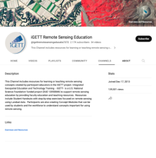 This iGETT Remote Sensing Education YouTube channel includes videos for teaching and learning remote sensing concepts. These videos were created by participant educators in the iGETT project. Videos include the following: Remote Sensing Made Easy, Introduction to Remote Sensing Concepts for GIS,...