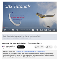 This video, from AmericaView, is the first in a six part series that discusses how to master the aeronautical chart for unmanned aerial systems (UAS) operators. The video covers an introduction to Visual Flight Rules (VFR) sectional charts, discusses what a sectional chart is, and provides a brief...