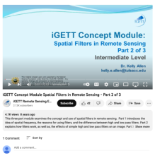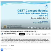 This video, from the Integrated Geospatial Education and Technology Training Project (iGETT), is the first part of a three-part presentation on spatial filters in remote sensing. It introduces brightness values, spatial frequency, high and low pass filters, and the reasons for using filters. The...