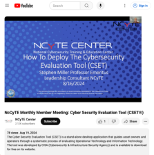 This video, from the National Cybersecurity Training and Education (NCyTE) Center, provides an overview and demonstration of the Cyber Security Evaluation Tool (CSET), a stand-alone desktop application that guides users through a "step-by-step process to evaluate industrial control system (ICS) and...