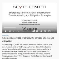This video from the National Cybersecurity Training and Education (NCyTE) Center explores threats, attacks, and mitigation strategies for the emergency services critical infrastructure sector. In the video, J. Philip Craiger conducts a quick review of emergency services and what it comprises,...