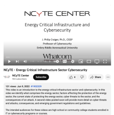 In this video from the National Cybersecurity Training and Education Center, Philip Craiger explores the energy critical infrastructure sector in the cybersecurity industry. Craiger provides information on the energy sector, factors that affect the protection of the energy sector, the current state ...