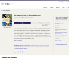 This report, available as a free download from the National Academies Press, presents a framework for k-12 science education which "proposes a new approach to K-12 science education that will capture students' interest and provide them with the necessary foundational knowledge in the field." 4 main...