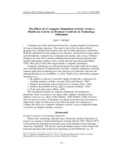 This paper from Kurt Y. Michael, Technology Education Teacher at Central Shenandoah Valley Regional Governor's School in Fishersville, Virginia, covers computer-simulation technology in education. He presents a study comparing hands-on activities and simulation activities in technology education....