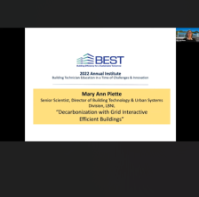 This presentation, provided by the Building Efficiency for a Sustainable Tomorrow (BEST) Center, is from the BEST Center's 2022 Annual Institute. In the presentation, Mary Ann Piette, director of the building technology & urban systems division at Lawrence Berkley National Laboratory, examines the...