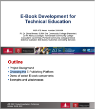 This presentation, published by Erie Community College and presented at the 2022 Advanced Technological Education (ATE) Principle Investigator Conference, focuses on the process of developing the Introduction to Vacuum Technology E-book, a textbook that covers topics in vacuum technology curated to...