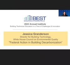 This presentation, provided by the Building Efficiency for a Sustainable Tomorrow (BEST) Center, is from the BEST Center's 2022 Annual Institute. During the presentation, Jessica Granderson, Director for Building Technology on the White House Council on Environmental Quality, discusses federal...