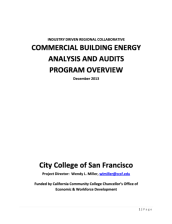 The Commercial Building Energy Analysis and Audits program at City College of San Francisco prepares students to conduct energy audits, evaluate building systems for efficiency, analyze energy data, and apply financial and business strategies in audit reporting. The program is divided into 15...