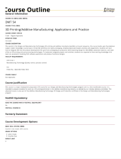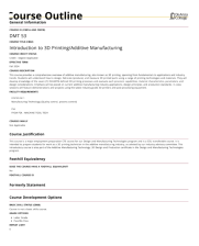 This 4-page course outline provides information about the Design for Additive Manufacturing course, which is taught at De Anza College and offers a comprehensive overview of industrial 3D printing and design for additive manufacturing (DfAM) principles. During the course, students will learn about "...