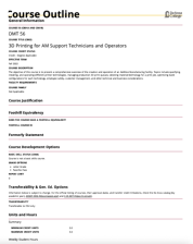 This 4-page course outline provides general information about the 3D Printing for AM Support Technicians and Operators course taught at De Anza College. This course provides an overview of the creation and operation of an additive manufacturing facility. During the course, students will learn about "...