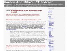 Gordon and Mike's ICT Podcast offers perspectives on the information and communication technologies (ICT) industries from Gordon Snyder and Mike Qaissaunee. In this podcast, Mike and Gordon review "cable and telephone company plans for delivery of voice, video, data and wireless technologies."...