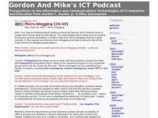 Gordon and Mike's ICT Podcast offers perspectives on the information and communication technologies (ICT) industries from Gordon Snyder and Mike Qaissaunee. In this podcast, Mike and Gordon discuss micro-blogging, which allows for bloggers to post short messages from via text and instant messages,...