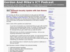 Gordon and Mike's ICT Podcast offers perspectives on the information and communication technologies (ICT) industries from Gordon Snyder and Mike Qaissaunee. In this podcast, the hosts discuss network security with Sam Bowne from the City College of San Francisco. The running time for this show is...