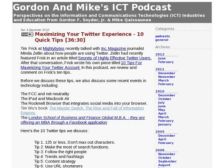 Gordon and Mike's ICT Podcast offers perspectives on the information and communication technologies (ICT) industries from Gordon Snyder and Mike Qaissaunee. In this podcast, the hosts review ten basic tips on maximizing your use of Twitter. Other recent events in technology are also discussed,...