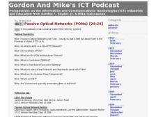 Gordon and Mike's ICT Podcast offers perspectives on the information and communication technologies (ICT) industries from Gordon Snyder and Mike Qaissaunee. In this podcast, Mike and Gordon take a look at modern day fiber optics delivery systems. The conversation focuses on innovations in the fiber...