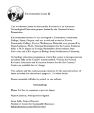 Environment Science is a series of three courses developed by Chemeketa Community College that addresses environmental topics. Each is a 4-credit course that includes a lab and lecture. The courses are targeted towards students in natural resource areas (e.g. Forestry, Fish and...