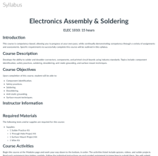 This course, developed by Bridgerland Technical College, teaches students about electronics assembly and soldering. Student learn how to solder and desolder connectors, components, and printed circuit boards using industry standards. Topics include component identification,...