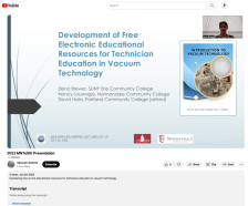 In this video presentation, provided by Erie Community College, physics professor Elena Brewer discusses the process of creating an accessible E-book, laboratory manual, and other online resources for training technicians in vacuum technology. Brewer begins by providing background on the...