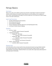 This collection of resources, from the Cybersecurity Education for Advanced Manufacturing Organizations project, is a part of the nmap Scenario. This scenario is a training module that provides an introduction to nmap, a free, open-source software used in network functionality and network...