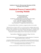 This learning module, from Support Center for Microsystems Education (SCME), serves as an introduction to statistical process control (SPC). "SPC is a set of tools used for continuous improvement and the assurance of quality in an active manufacturing process. This learning...