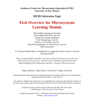 This module, from Support Center for Microsystems Education (SCME), introduces students to common etch processes used in the fabrication of microsystems. Etch terminology, purpose, and processes are covered in the module. The included activities "allow students to demonstrate...