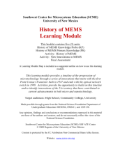 This learning module, from Support Center for Microsystems Education (SCME), is an overview of the history of microelectromechanical systems (MEMS). This resource provides "a timeline of the progression of microtechnology through a series of innovations that starts with the...