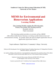 This module, from Support Center for Microsystems Education (SCME), provides "an overview of how MEMS (MicroElectroMechanical Systems) are being used for bioterrorism and environmental sensing." The module is divided into the following three units: Primary Knowledge (PK) Reading...