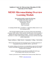 This module, from Support Center for Microsystems Education (SCME), provides an "overview of three micromachining processes (bulk, surface, LIGA) used for the fabrication of microsystems or MEMS (microelectromechanical systems)." This module is divided into the following...