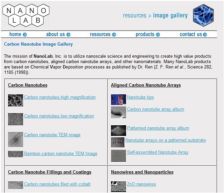 This NanoLab webpage provides nanoscience images. Images include carbon nanotubes, nanoparticles, nanowire, as well as nanotube fillings, coatings, and arrays.