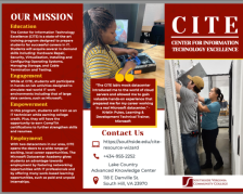 This collection of promotional resources, published by Southside Virginia Community College, was used to recruit and retain students for the Center for Information Technology Excellence (CITE) Information Technology (IT) training program, which provides students with hands on IT training while...