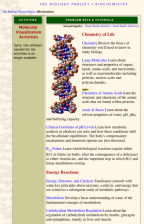 This collection of learning materials from the Biology Project at the University of Arizona is divided up into two sections: Chemistry of Life and Energy Reactions. On the site, visitors can find eleven tutorials and problems sets on topics such as Large Molecules, Acids and Bases, Metabolism, and...