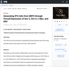 This video, from G. Grant Welstead, Tobias Brambrink, and Rudolf Jaenisch of MIT's Whitehead Institute for Biomedical Research, Massachusetts Institute of Technology explores how to generate iPS cells from Mouse Embryo Fibroblasts. The video is also accompanied by protocols for thawing and freezing...