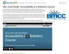 This case study highlights the Borough of Manhattan Community College's creation of an accessible robotics curriculum in collaboration with the Center for Applied Special Technology (CAST). This curriculum was "used for outreach to high schools in order to increase the representation of students of...