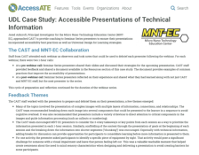 This case study highlights the training that the Center for Applied Special Technology (CAST) provided for the Micro Nano Technology Education Center (MNT-EC). The training provided MNT-EC webinar presenters with information on accessibility best practices for presentations. The training intended to...