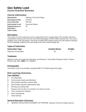 From the GeoExchange Initiative at Gateway Technical College, this Course Outcome Summary describes the Geo Site and Record Management course, in which students learn the types of records and data that must be collected, tabulated, maintained and reported to governmental bodies" including "proper...
