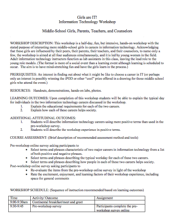 This 14-page document, made available by The National Convergence Technology Center (CTC), is a "half-day, fun, but intensive, hands-on workshop with the stated purpose of interesting more middle-school girls in careers in information technology." The workshop is geared towards middle-school girls...