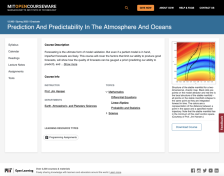 This page is a course overview for Massachusetts Institute of Technology’s (MIT) course 12.990, Prediction and Predictability in the Atmosphere and Oceans. Topics covered include: limiting factors for weather forecasting, atmospheric modeling, and mathematical tools for atmospheric modeling. The...