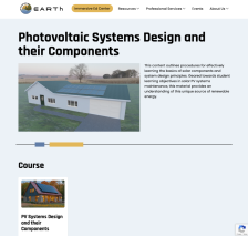 This web page, from Environmental and Natural Resources Technology (EARTh), Center provides photovoltaic systems design and components course materials. The page begins with a brief overview of the material included and then is organized into the following sections: Course, Modules, and Supplemental...