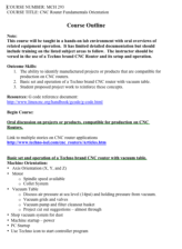 These zipped documents from MatEd provide information on designing a course on CNC Router Fundamentals Orientation. At the end of the course, students will be able to identify manufactured projects or products that are compatible for production on CNC routers, operate a Techno brand CNC router, and...