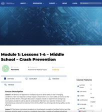 This learning module, from the National Center for Autonomous Technologies (NCAT), provides four lessons on crash prevention for Middle School students. Lesson one explores how reaction times affect driving and driving safety. Lesson two explores stopping distance and the physical concepts of...